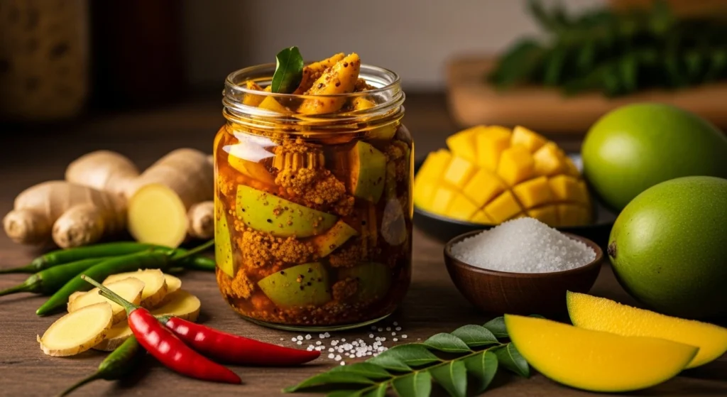 - Picles de manga com limão e coentro: refrescante e aromático.